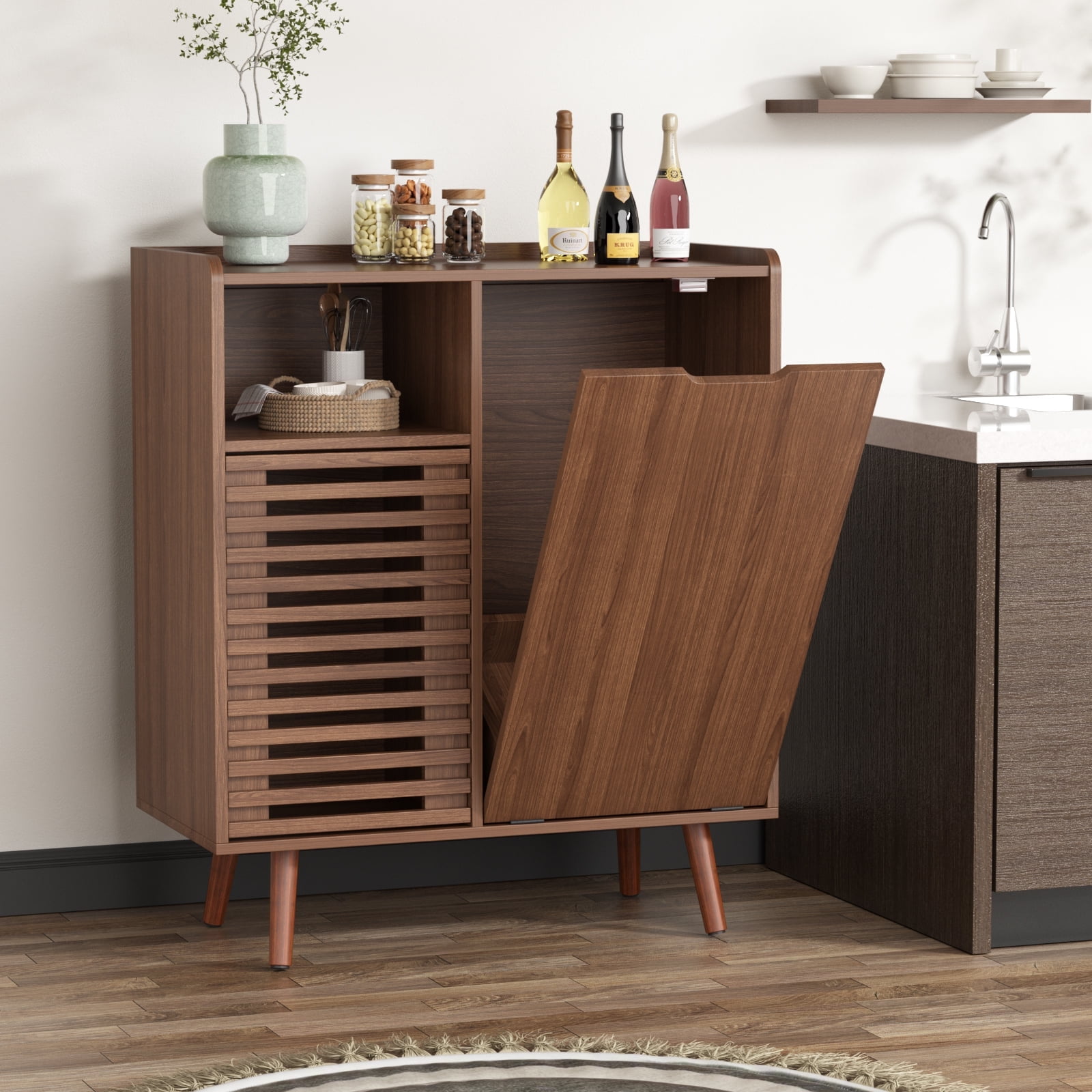 Vabches Kitchen Tilt Out Trash Cabinet, Wooden Pet Proof Trash Can, 10 Gallon, White