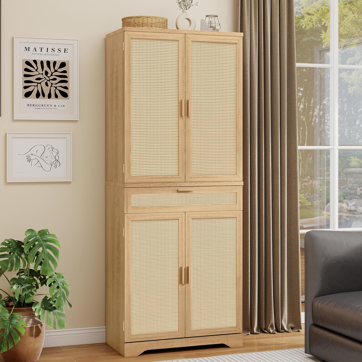 VEANERWOOD 71" Tall Arch Cabinet, Wood Kitchen Storage Cabinet with 4 Doors and 6 Shelves for Dining Room Living Room