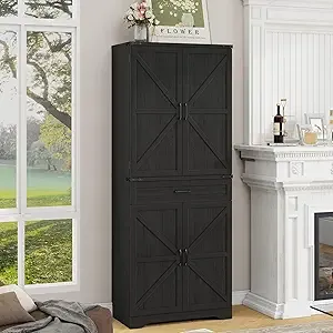 VEANERWOOD 71" Tall Farmhouse Kitchen Pantry Cabinet, 5 Layers Wood Storage Cabinet With Drawer for Kitchen, Dining & Living Room