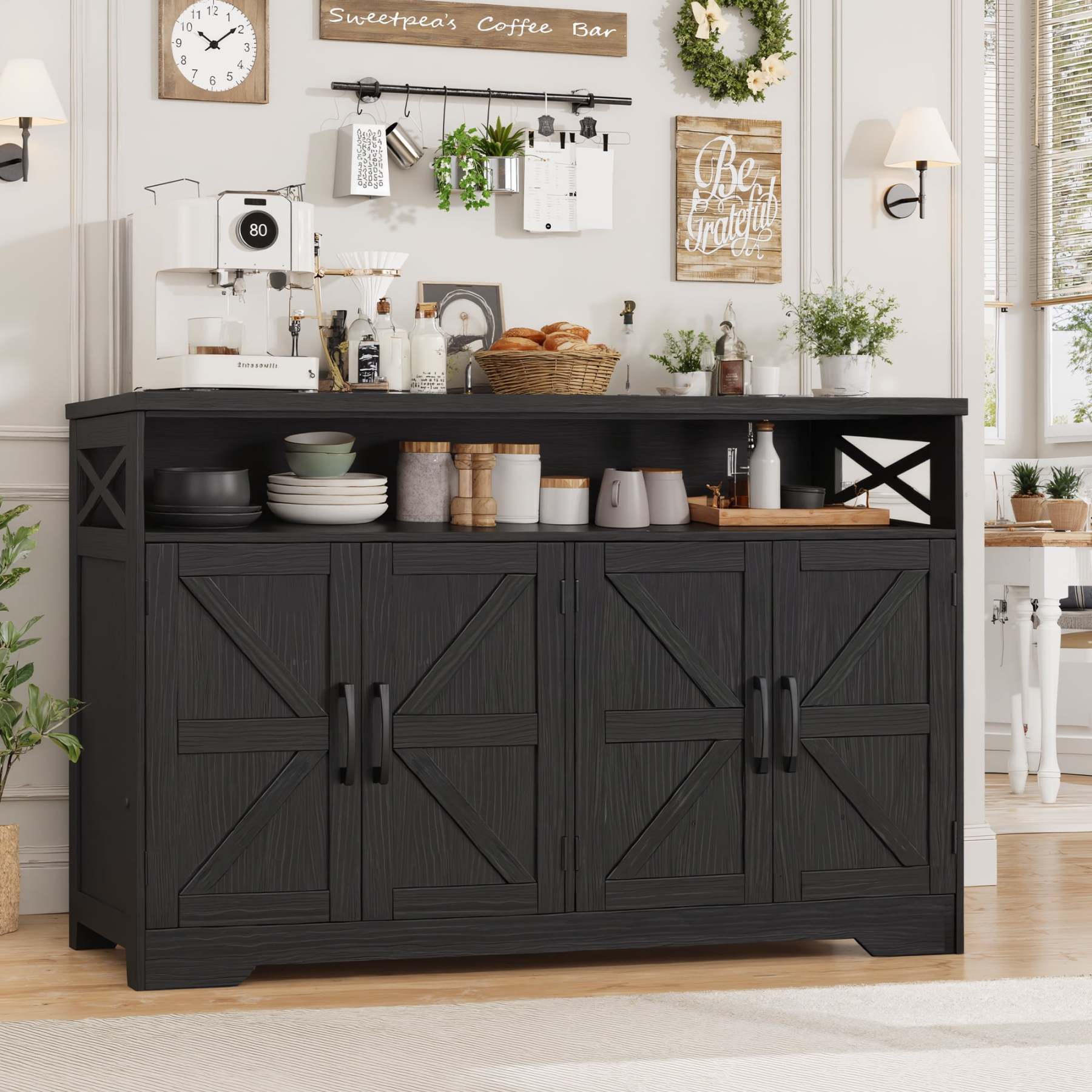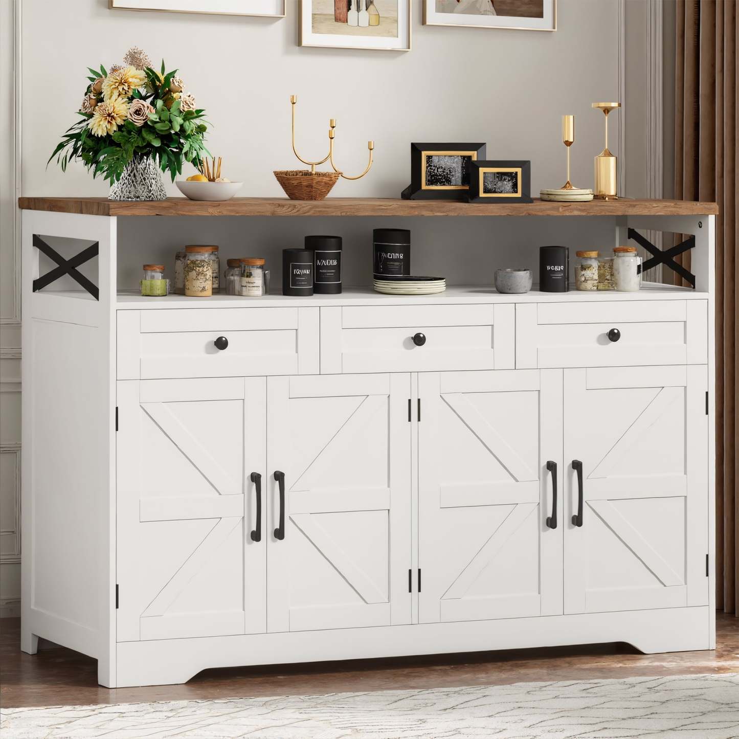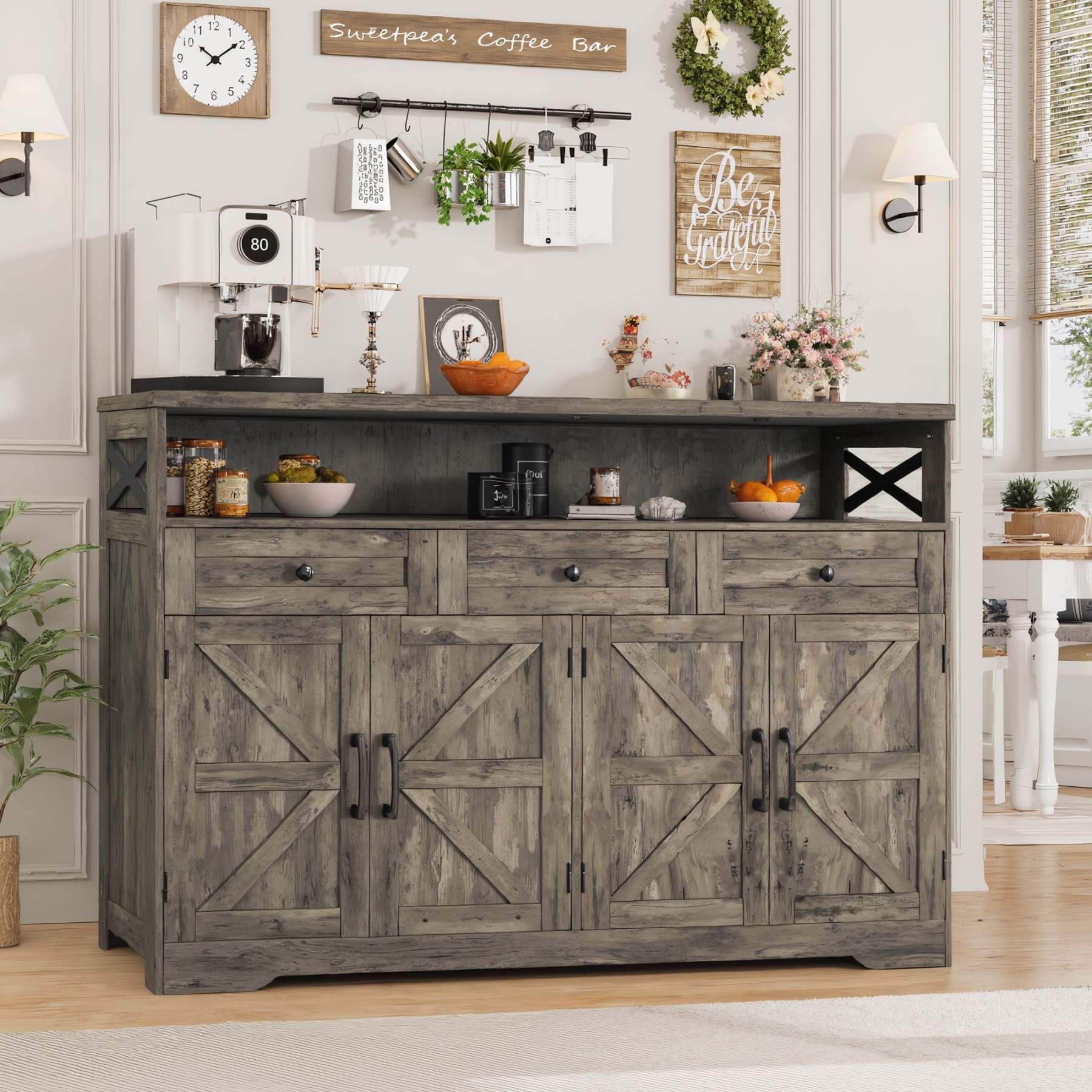 Vabches 51'' Large Sideboard Buffet Cabinet, Farmhouse Kitchen Buffet Cabinet with Charging Station, Storage Drawers and Adjustable Shelf, Wood Coffee Bar Cabinet for Living Room