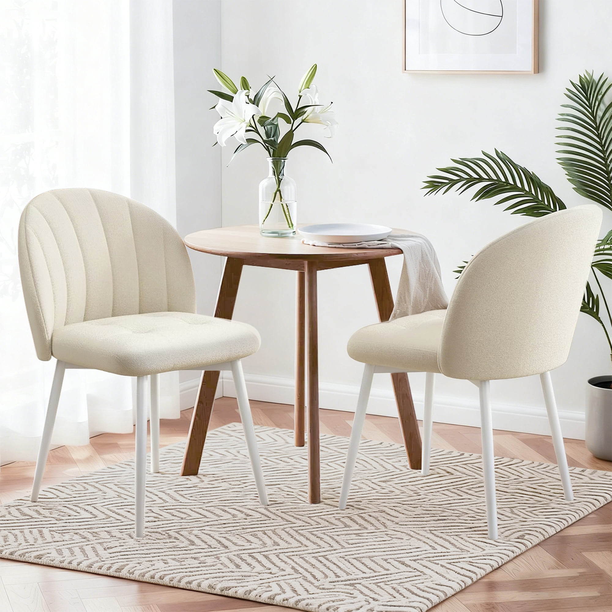 Vabches Upholstered Velvet Dining Chairs Set of 2, Modern 21" W Kitchen Chairs with Adjustable Foot Pad & Metal Legs, White
